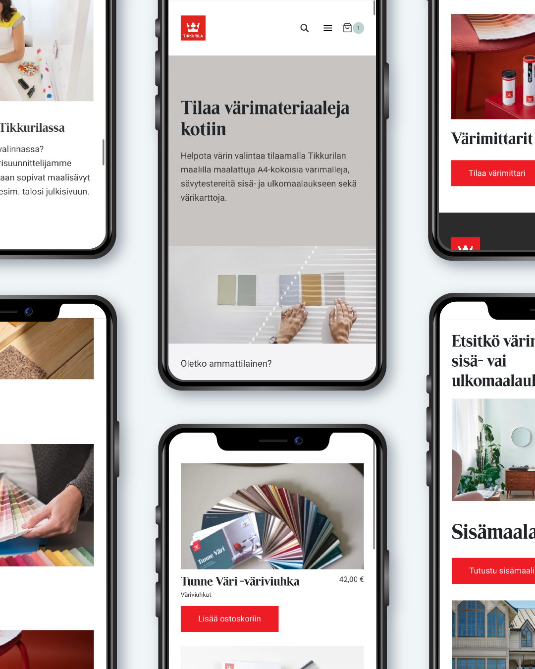 Tikkurilan suosittu värimateriaalien verkkokauppa on niin kotisisustajien ja maalareiden sekä ammattilaisten värikarkkikauppa. Verkkokaupan käyttökokemus ja -liittymä sekä tekninen toteutus kaipasi kuitenkin uudistusta ja saimme kunnian olla mukana kehittämässä uutta verkkokaupparatkaisua.
